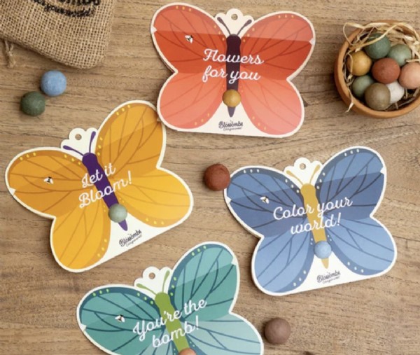 De kleurrijke bloembommetjes van Blossombs zijn gemaakt in Nederland met biologische wilde bloemzaadjes en 100% natuurlijke ingrediënten.